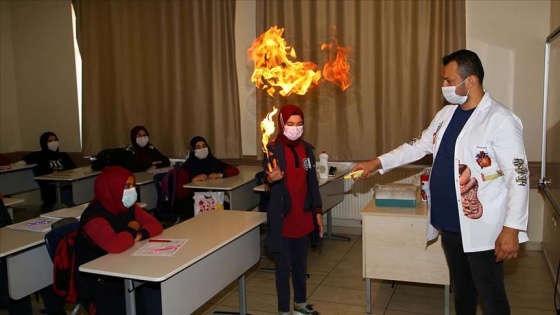 Öğrenci Erva Kaya ise okulların açılmasının mutluluğunu yaşadığını aktararak, "Uzun zaman sonra okullar açıldı ve bugün okulumuzun açılışını deneyler yaparak kutladık. Çok mutluyum. İnşallah bir an önce salgın biter ve herkes okuluna, derslerine kavuşur. Okulda deney yapmayı çok özlemişiz." ifadelerini kullandı.