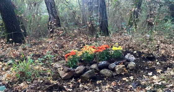 Çok sevdiği ve bir an olsun yanından ayırmadığı köpeğinin kaybetmenin acısını yaşayan Atabay, Maskot'u Armutalan Mahallesi'ndeki ormanlık alana gömerek taştan mezar yaptı. Mezarın üstüne çiçekler bırakan acılı kadın uzun süre maskotun başından ayrılamadı.