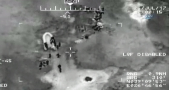 Bu kez de sahil güvenlik uçağı Madra Çayı’nda kara üzerinde iki göçmen grubu daha belirledi. Görevlendirilmelerin ardından 56 kişilik göçmen grubu da operasyonla yakalandı.