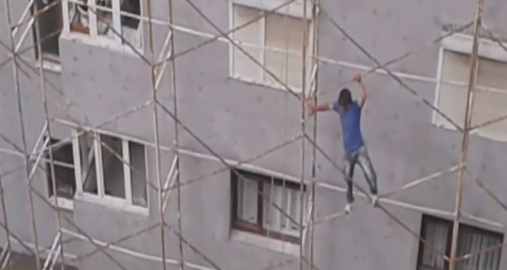 İstanbul’da geçtiğimiz günlerde Beylikdüzü ve Mecidiyeköy’de 10 katlı bir binanın dış cephesine kurulan iskelenin üzerinde hiçbir güvenlik önlemi almadan çalışan işçilerin ardından Şişli Teşvikiye’de de hayrete düşüren bir görüntü ortaya çıktı. 6 katlı bir binanın dış cephesine kurulan iskeleden halat, kask ve koruyucu kıyafet giymeden tehlikeli bir şekilde aşağıya inen “örümcek işçi” bu kadarına da “pes” dedirtti. Akrobasi hareketleriyle aşağıya inerek yürekleri ağza getiren işçinin iskelesinin demirlerine tutunarak indiği o anlar cep telefonu kamerasına yansıdı.