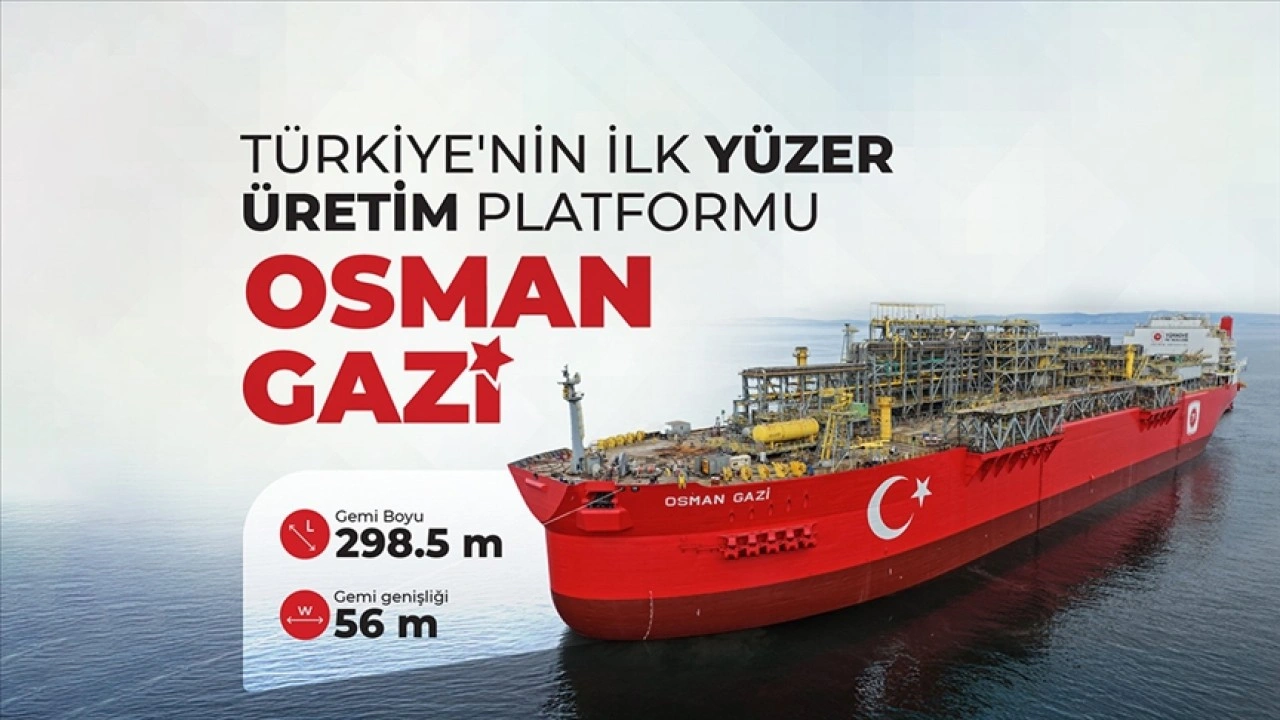 Bakanlığın, X sosyal medya platformundan yapılan paylaşımda, "Yeni dönemin adı: Osman Gazi, Rota: Karadeniz, Hedef: Tam Bağımsız Türkiye! Türkiye'nin ilk yüzer üretim platformu Osman Gazi, Karadeniz'deki doğal gaz üretimimizi iki katına çıkaracak." ifadesi kullanıldı.