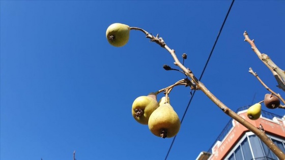 Şehit Halis Şişman Mahallesi'nde oturan İbrahim Hançer'in, bahçesinde yetiştirdiği armut ağacı ocak ayında meyve verdi.
