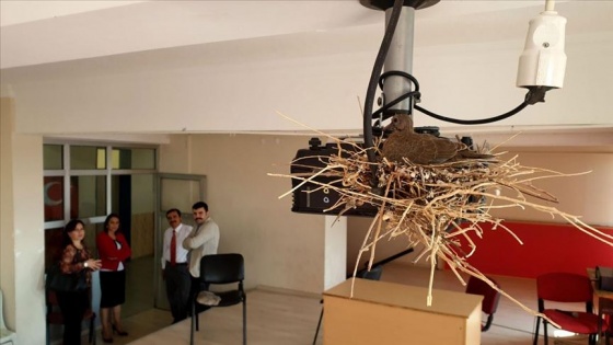 "Onlar ekosistemin parçası olacağı için mutluyuz"Okulun müdür yardımcısı Mehmet Demircioğlu, AA muhabirine yaptığı açıklamada, okulun toplantı salonundaki projeksiyon cihazının üzerine yuva yapan kumruyu yaklaşık 3 ay önce fark ettiklerini söyledi.