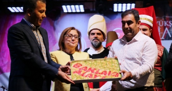 Büyükşehir Belediye Başkanı Fatma Şahin ise Baklava Alayının 500 yıllık bir gelenek olduğunu belirterek, geleneğin Kanuni Sultan Süleyman döneminde başladığını kaydetti. Ramazan ayının 15'inde gerçekleştirilen geleneğin Yeniçeri Ocağının kaldırılması ile unutulduğunu hatırlatan Şahin, 191 yıl sonra bir Osmanlı geleneğini gün yüzüne çıkarmak istediklerini kaydetti. Şahin, "Gelenekten geleceğe gidiyoruz. Yerelden evrensele gidiyoruz. Çocuklarımız bunları görsün, geleceğe taşısın istiyoruz. En iyi lahmacun, en iyi kebabı ve en iyi yemeği biz yapıyoruz. Gaziantep olarak baklavanın da en iyisini biz yapıyoruz" diye konuştu.