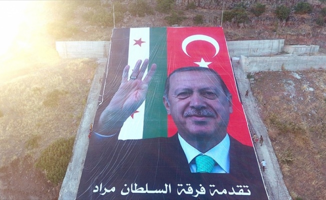 AA muhabirinin aldığı bilgiye göre, ÖSO çatısı altında Zeytin Dalı Harekatı'na katılan Milli Orduya bağlı ÖSO unsurlarınca, Kilis'in Gülbaba köyünün karşısındaki Darmık Dağı'nda imha edilen terör örgütü elebaşı Abdullah Öcalan'ın resminin yerine, arka planında Türk ve Suriye devrimi bayraklarının bulunduğu Erdoğan'ın dev posteri asıldı.