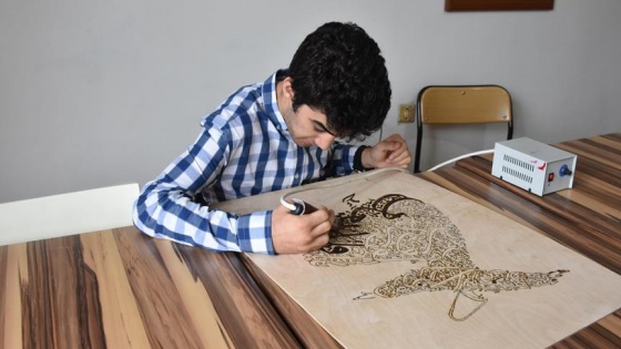 Afyonkarahisar'da özel eğitim merkezinde resim yeteneği keşfedilen 17 yaşındaki otizmli Faik Emre Arslan'ın, ahşap yakma sanatı ile yaptığı resimler ilgi görüyor.