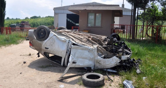 Bursa’nın Gemlik ilçesindeki bir firmaya ait orman ürünlerini gemiye yükleyen Mesut Kumaş (22), Volkan Koçak (25) ve Faruk Duman (29), işleri bittikten sonra İnegöl’e dönmek üzere yola çıktı. Mesut Kumaş yönetimindeki 34 KT 0405 plakalı firmaya ait otomobil, İnegöl’ün Şehitler Mahallesi kavşağında kontrolden çıktı. Yolun sağındaki bariyerlere çarpan otomobil yağmur suyu kanalına düştü. Yaklaşık 40 metre sürüklenen otomobil ardından beton kanala çarparak takla attı.
