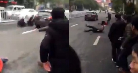 Çin’de yol kapatarak eylem yapan gruba öfkelenen şahıs, otomobilini kalabalığın üzerine sürdü. İnsanlar süratle gelen aracın çarpması sonucu sağa sola savruldu. Şahıs otomobiliyle kaçarken, insanlar da yaralanan 8 kişinin yardımına koştu.