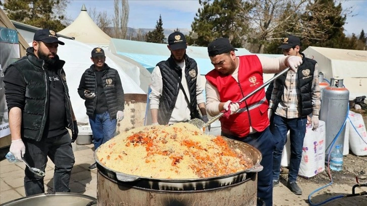 Kahramanmaraş merkezli 6 Şubat'ta meydana gelen depremlerden sonra Hatay'a ardından da Kahramanmaraş'a yardımlar götüren Yurak Amri Vakfı, Kahramanmaraş Fuar Merkezi'ndeki çadır kentte, günlük yaklaşık 3 bin kişiye Özbek pilavı dağıtıyor.