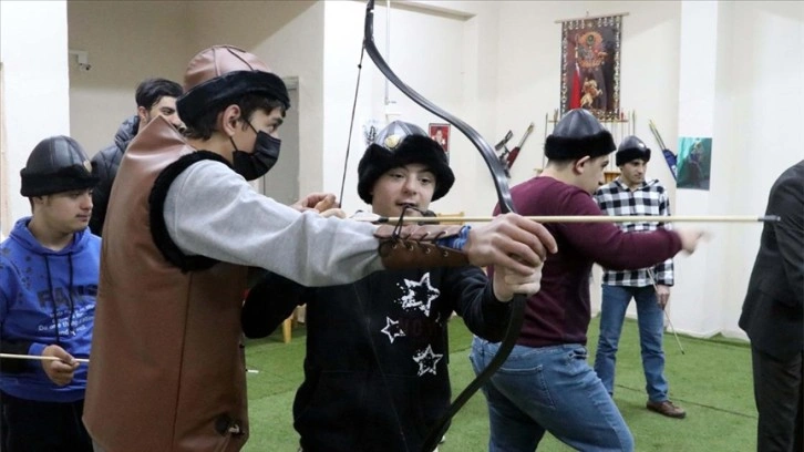 Burada meslek liselilerin eşliğinde geleneksel ok imal eden "özel öğrenciler", daha sonra bu oklarla atış talimi gerçekleştirdi.