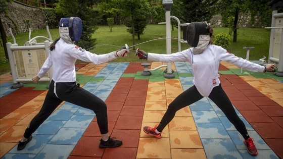 Eskrim sporcusu 14 yaşındaki Almıla Birke Durukan ile Alisa İsbir, yeni tip koronavirüs (Kovid-19) salgınıyla mücadele kapsamında getirilen sokağa çıkma kısıtlaması sebebiyle evlerinde online videolar izleyerek, kısıtlamanın kalktığı günlerde de civardaki parklara giderek müsabakalara hazırlanıyor.
