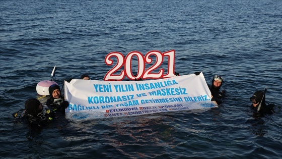 Yaklaşık 15 dakika süren dalış sırasında dalıcılar, "Yeni yılın insanlığa, koronasız ve maskesiz sağlıklı bir yaşam getirmesini dileriz" ile "2021" yazılı pankartlar açtı.
