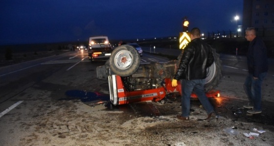 Edinilen bilgilere göre, Ahmet Türkel Çevre Yolu'nda tek şeride düşen Ortaköy Kavşağı'nda Tacettin Özdemir (56) yönetimindeki 16 KKC 87 plakalı traktör, karşı yönden gelen Halil Özüak (27) yönetimindeki 42 UK 240 plakalı otomobille kafa kafaya çarpıştı. Çarpışmanın etkisi ile otomobil yolun kenarına savrulurken, Bedre Deresi'ne yuvarlanan traktörün motor kısmı ikiye bölündü. Traktör sürücüsü Tacettin Özdemir, dere kenarına yuvarlanarak ters dönen kabinli traktörün altında kaldı. Traktörün altında sıkışan sürücüyü gören vatandaşlar, durumu İnegöl İtfaiye ekiplerine bildirdi. Kaza yerine gelen itfaiye arama kurtarma ekipleri, traktörü hava yastığı ile kaldırarak sürücüyü kurtardı. Traktörün altından yaralı olarak kurtarılan sürücü, yola çıkarıldı. Kazada hafif şekilde yaralanan otomobil sürücüsü ile traktör sürücüsü, ambulanslarla İnegöl Devlet Hastanesine kaldırıldı. Hastanede tedavi altına alınan traktör sürücüsünün vücudunda küçük kırıklar olduğu, ciddi bir sağlık sorununun olmadığı öğrenildi. Parçalara ayrılan traktör ile otomobil ise çekici yardımı ile olay yerinden kaldırıldı.