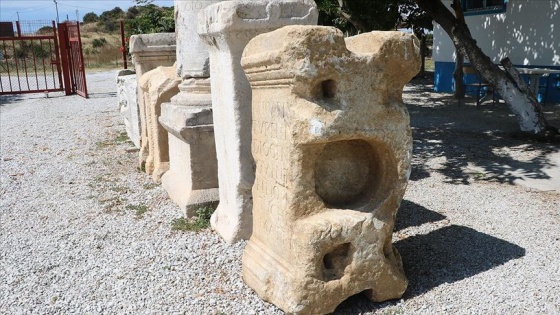 Antik kentte ters çevrilmiş taşın üzerindeki yazıyı inceleyen arkeologlar, bunun bir anıt mezar kitabesi olduğunu belirledi.