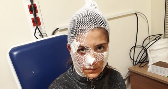 Genç kadının ise kaşı, burnu, kulağı, boynuna ve ellerine tam 80 dikiÅŸ atıldı.