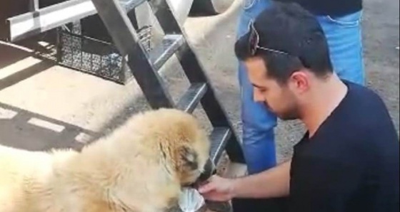 Polisin verdiği suyu içen köpeğin susuzluğu geçmeyince bu defa başka bir polis memuru devreye girdi.