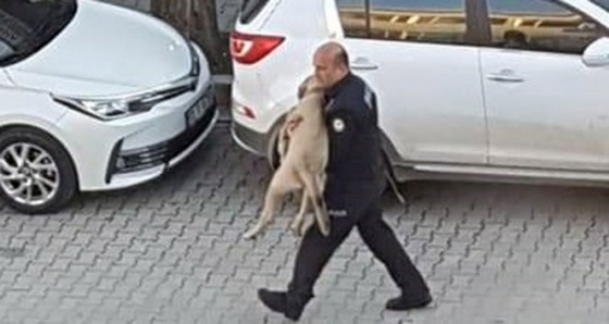 Feke İlçe Kaymakamlığında görevli polis memuru Muharrem Burak Sönmez, Ulus Caddesi'nde plakası belirlenemeyen bir aracın çaptığı sokak köpeğini veterinere götürdü.