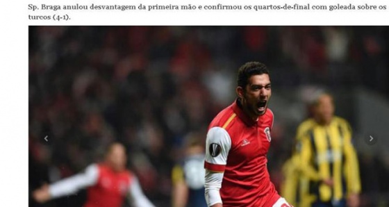 Abola gazetesi, "Braga, Fenerbahçe'yi 4-1 yenerek çeyrek finale yükseldi" başlığı atarken, Record gazetesi, "Braga ikinci yarı mükemmel bir dönüşle çeyrek finale kaldı" diye yazdı. Ayrıca Volkan Şen için ise gazete, "Volkan Şen aklını yitirip, hakemi itti" ifadesini kullandı. Correio gazetesi, "Hiç bir şey imkansız değildir" başlığını atarken, Publico gazetesi, Braga'nın galibiyetini şöyle gördü:"Türkler geride kaldı, Braga Avrupa'daki yoluna devam ediyor."