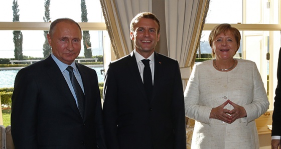 Kremlin Basın Merkezi'nden Putin'in, Macron ve Merkel ile telefon görüşmesi yaptığı açıklandı. Görüşmede liderlerin, Suriye meselesini konuştukları belirtilirken, "Putin, Suriye'nin kuzeybatısındaki durumu istikrara kavuşturmak, sivilleri korumak ve terör tehdidini etkisiz hale getirmek için Türkiye ile ortaklaşa alınan önlemler hakkında bilgi verdi." ifadesine yer verildi.