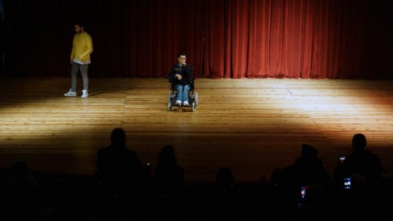 İzmir'de bestelediği ve söylediği rap şarkılarıyla yaşama tutunan genetik kas hastası Metin Özkan, kendisi gibi hastalara umut verip destek olmak için sahneye çıktı.