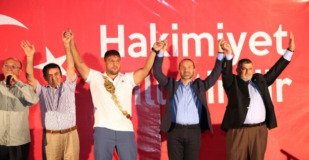 655. Kırkpınar Başpehlivanı Recep Kara, memleketi Ordu’nun Ünye ilçesindeki demokrasi nöbetine katıldı.