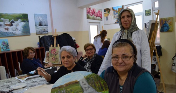 Kursiyerin en yaşlılarından 72 yaşındaki Selma Zihni ise bütün sıkıntılarını resim yaparak unuttuğunu belirterek adeta ruhsal açıdan terapi gördüğünü söylüyor. Resim yapmayı çok sevdiğini ifade eden Zihni, “ Resim çizmeyi çok seviyorum, gençliğimden beri içimde bir hevesti. Çocukları büyüttükten sonra resim çizmeye başladım. Yaklaşık 5 aydır buraya gelerek resim çiziyorum. El becerilerini zamanla kaybediyorsunuz ama yine de başarmaya gayret gösteriyorum. Burası ruhsal açıdan bizim için bir terapi merkezi” diye konuştu.