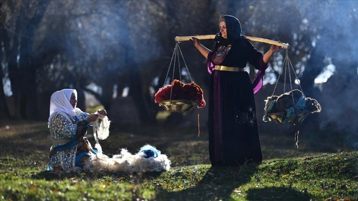 İlkbaharda kırkılan koyunlardan elde edilen yünleri toplayıp yıkayan kadınlar, bu yünleri çeşitli işlemlerden geçirerek ipliğe dönüştürüyor.