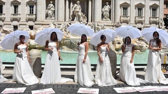 İtalya Düğün ve Hediyelikler Derneğinin "Bize kutlama özgürlüğünü geri verin" çağrısıyla Roma’nın dünyaca ünlü "Aşk Çeşmesi" olarak da bilinen Trevi Çeşmesi önünde toplanan yaklaşık 20 gelin adayı ve düğün organizatörü Kovid-19 tedbirleri dolayısıyla düğünlerini yapamama durumunu protesto etti.