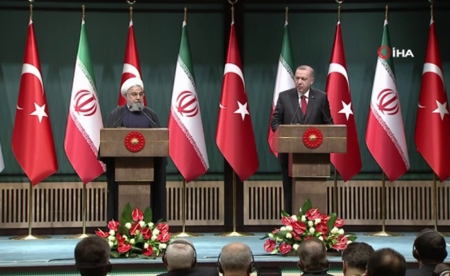 Cumhurbaşkanı Recep Tayyip Erdoğan, İran Cumhurbaşkanı Hasan Ruhani ile ortak basın toplantısı düzenledi. Cumhurbaşkanı Erdoğan’ın konuşmasının ardından söz alan Cumhurbaşkanı Ruhani, Türkiye ile İran arasındaki ekonomik, ticari iş birliğinin geliştirilmesi ve bölgesel konularda Cumhurbaşkanı Erdoğan ile görüştüklerini belirti. Ruhani, “Hiçbir güç komşuluk, kardeşlik ve samimi ilişkilerimizi bozamaz. Amerika’nın uyguladığı tek taraflı ve kanunsuz ambargolar karşısında kesin ve açık tutumlarından dolayı teşekkür ediyorum. Amerika’nın İran’a uyguladığı bu eylem yüzde yüz terörist bir eylemdir" ifadelerini kullandı.