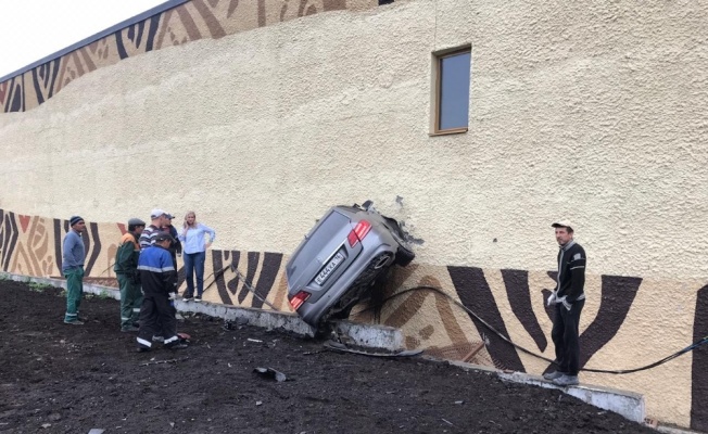 Rusya’da kontrolden çıkan bir otomobil yoldan çıkarak bir hayvanat bahçesinin duvarına saplandı.