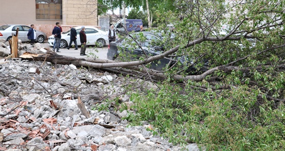 Sivas'ta akşam saatlerinde etkili olankuvvetli rüzgar Demircilerardı Mahallesi'nde bazı ağaçların devrilmesine neden oldu. Öte yandan devrilen ağaçlar, çatılardan düşen parçalar ve yıkılan bir bahçe duvarı ile üç araçta maddi hasar meydana geldi.