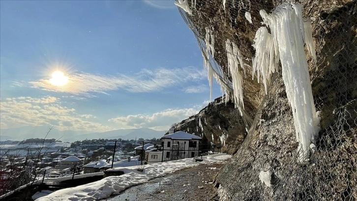 Safranbolu'nun etrafını çevreleyen kanyonlarda uzunlukları 2 metreyi bulan buz sarkıtları oluştu.