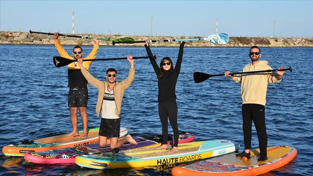 Sürücülük de yapan paramedik 29 yaşındaki Tuba Saka ise "Boş zamanlarımızda buraya gelip sup yapıyoruz. Bütün stresimizi denizde atıyoruz. Nöbet aralarında geliyoruz. 6 aydır bu sporla ilgileniyorum, çok zevkli." dedi.