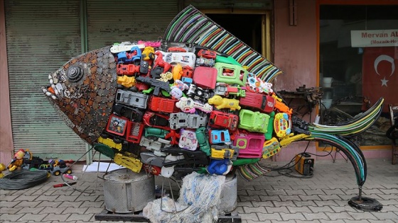 Denizlerdeki plastiklerden en çok balıkların etkilendiğini vurgulayan Altınorak, "İki aydır çalışmamı sürdürüyorum. Samandağ sahilinde dalgaların kıyıya sürüklediği plastik atıkları ve çevreden topladığım eski plastik oyuncakları atölyemde bir araya getirerek balık heykeli yaptım." dedi.
