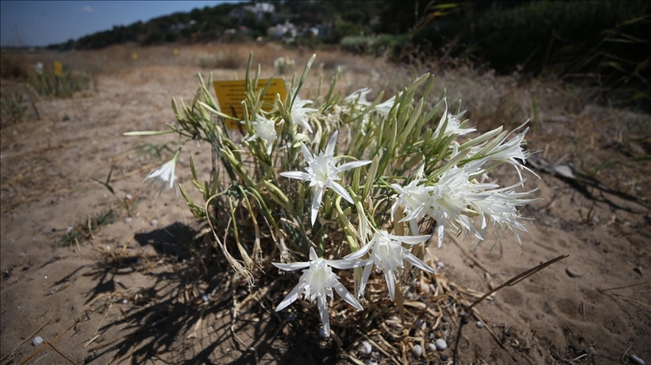 Yunan mitolojisinin de önemli bir parçası olan kum zambakları, ağustos-ekim aylarında bembeyaz açan çiçekleriyle kıyılara renk katıyor, geceleri de çevreye güzel kokular yayıyor.