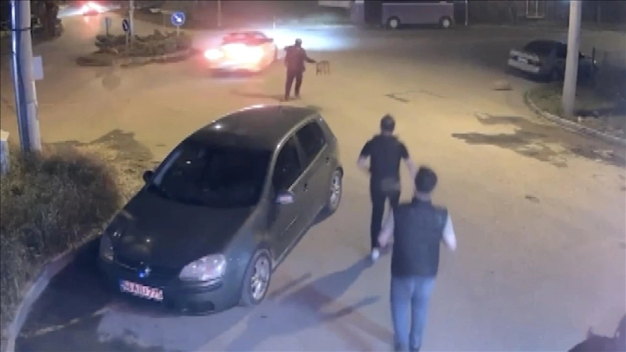 Durumu fark eden sürücü, hızla olay yerinden uzaklaşmaya çalışırken, esnafın attığı tabure otomobile isabet etmedi.
