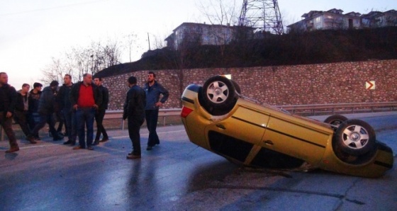 Edinilen bilgilere göre, Sakarya D-100 Karayolu Beşköprü mevkiinde meydana gelen kazada, 54 AR 339 plakalı otomobil, sürücüsünün Sapanca sapağına girerken direksiyon hakimiyetini kaybetmesi sonucu kontrolden çıkarak takla attı.