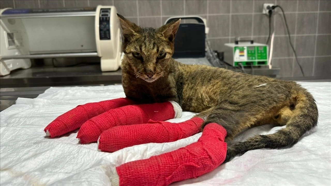 Tedaviyi veteriner teknikeri Bahadır Kaya ile yapan veteriner hekim Abdullah Tetik, yaptığı açıklamada, kedinin bitkin olduğunu ve yürümekte güçlük çektiğini söyledi.