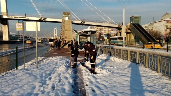 Tüm ekipler, vatandaşların kayarak zarar görmemesi için köprü, durak, kaldırım, üstgeçit ve yürüyüş yollarında buz kırma işlemi yaptı.