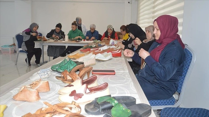 Adapazarı Halk Eğitimi Merkezinde açılan el becerileri kursunda kadınlar, geleneksel yemenileri modern tasarımlarla birleştirerek üretiyor.