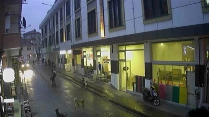 Sakarya'nın Akyazı ilçesinde okuldan dönen çocuğa sahipsiz köpeklerin saldırması, çevredeki bir iş yerinin güvenlik kamerasına yansıdı
