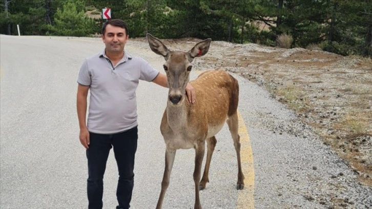 Yeşilova ilçesindeki ormanlık alanda doğan yavru kızıl geyiğin annesinden süt emmesi ve sıcaktan etkilenen bir kızıl geyiğin Burdur Orman İşletme Müdürü Sefa Karataş'ın elinden su içmesi cep telefonu kamerası ile kaydedildi.