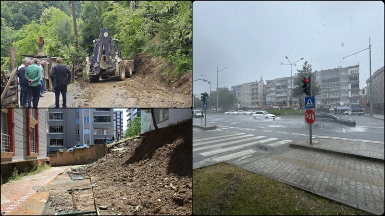 Gece saatlerinden itibaren sağanağın etkili olduğu Yakakent ilçesinde de Asmapınar ile Çepni mahalleleri grup yolu Cevizdibi mevkisinde heyelan oluştu.