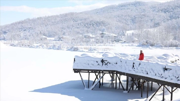 Samsun'da Ladik Gölü'nün yüzeyi buzla kaplandı