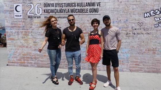 Yeşilay destekçisi sanatçılar Aydilge, Bahadır Tatlıöz, Melikzade Çinare ve Burak Arslan da alanda kurulan duvara, günün anlamına dair mesajlar yazarak, gençleri uyuşturucunun zararlarına karşı uyardı.