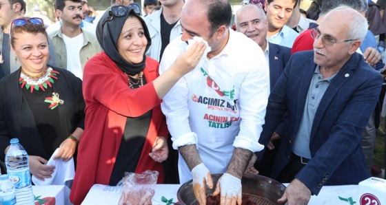 Başkan Çiftçi'ye çiğköfte yoğurması sırasında eşi Sema Çiftçi de eşlik etti. Eşinin başından ayrılmayan Sema Çiftçi daha sonra yarışmacıları da ziyaret ederek kolaylıklar diledi. Yoğurma etkinliğinin de startını veren Çiftçi, çiğköfteye en güzel lezzeti isotun verdiğini belirterek, katılım gösteren herkese teşekkür etti. Yarım saat süren yoğurma işlemlerinin ardından çiğ köfteler vatandaşlara ikram edildi. Renkli görüntülerin yaşandığı çiğ köfte yoğurma etkinliğinde kadın, çocuk ve yaşlılar kıyasıya birbiriyle yarıştı.