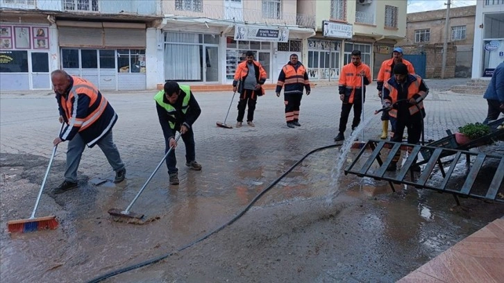 Belediye ekipleri, su basan evlerde iş makinelerinin de desteğiyle temizlik çalışması başlattı.