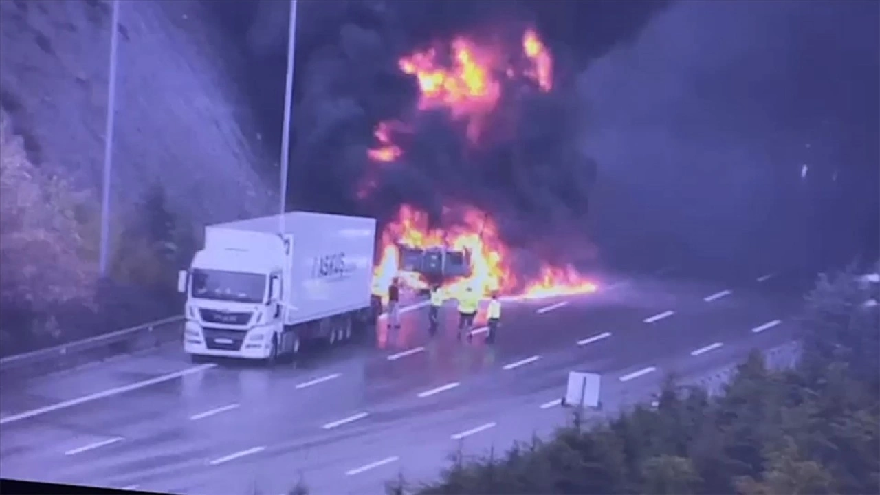 Yangın nedeniyle trafik akışının bir süre tek şeritten sağlanması nedeniyle güzergahta yoğunluk oluştu.