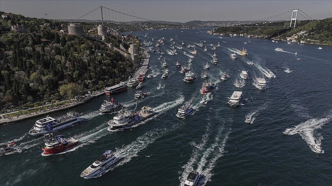 Sarıyerli taraftarların İstanbul Boğazı'nda tekneleriyle yaptığı kutlama renkli görüntülere sahne oldu.