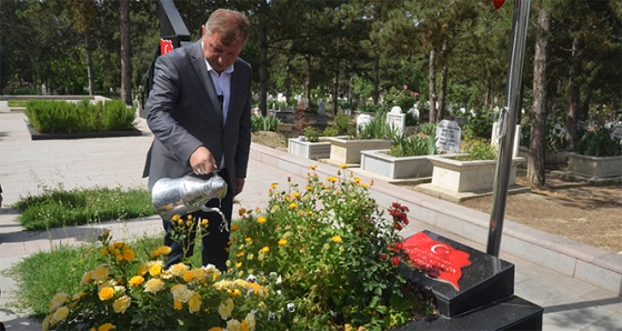 Ramazan Bayramı nedeniyle İlçe Müftülüğünce ilçe şehitliğinde düzenlenen anma programında Kur'an-ı Kerim okundu ve dualar edildi.